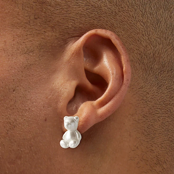 Aretes en color blanco con diseño de oso