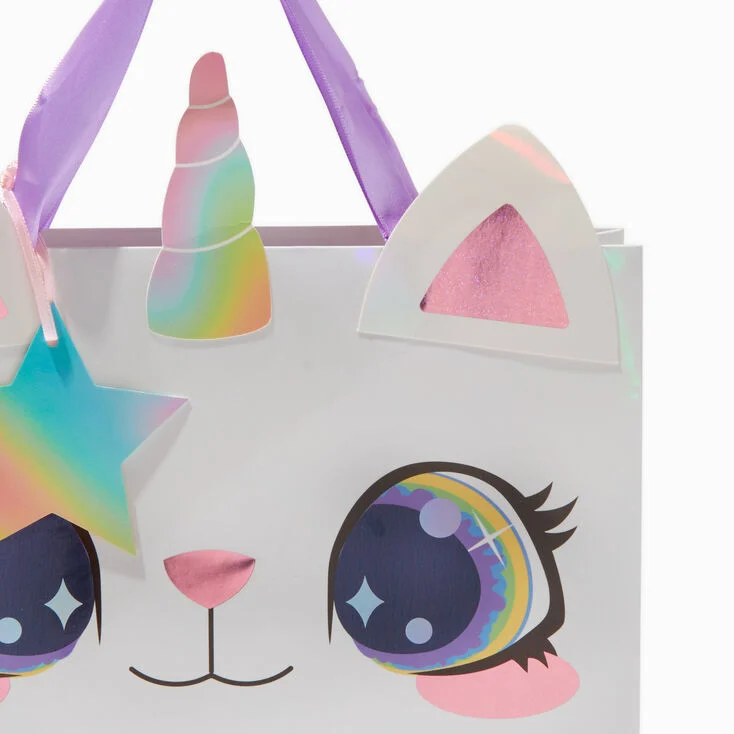 Bolsa para regalo grande con diseño de Caticorn. Tamaño 24.13W x 22.86H cm de papel