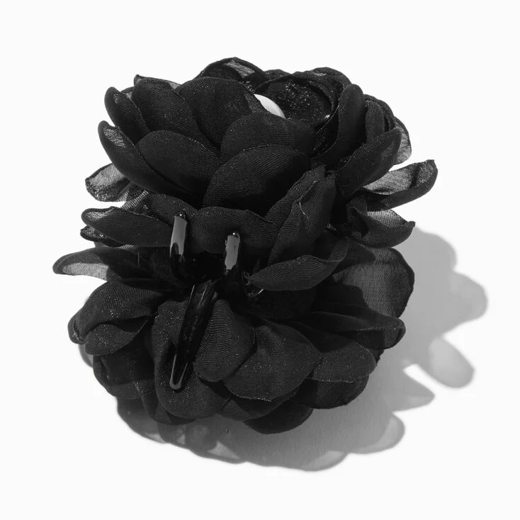 Gancho con diseño de flor en color negro con detalle de perla falsa