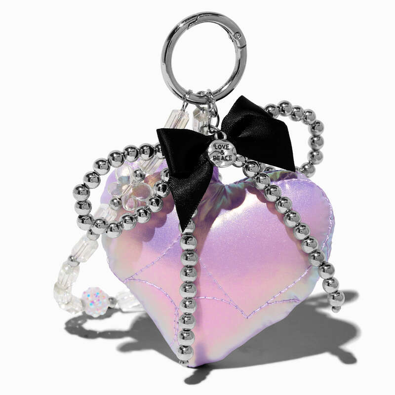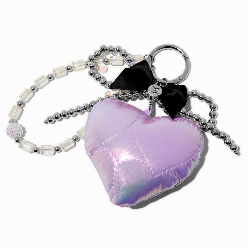 Llavero con diseño de corazón acolchado en color lila