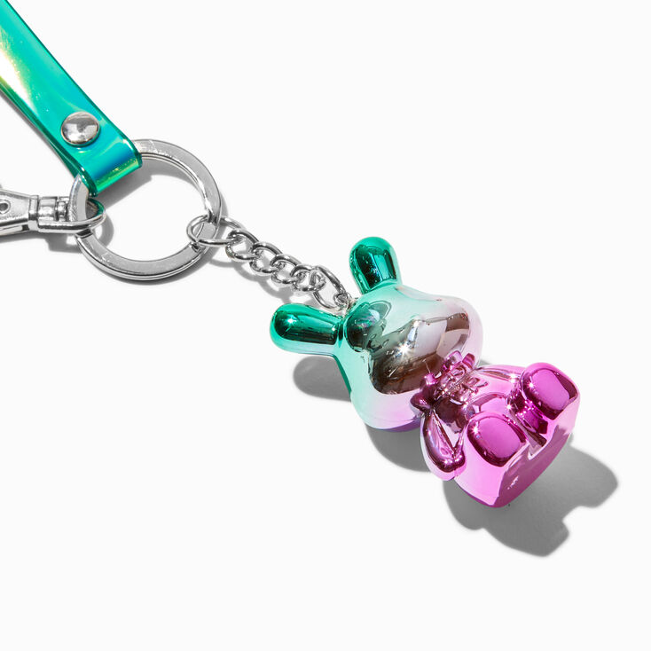 Llavero con diseño de conejito cromado en rosa y azul degrade