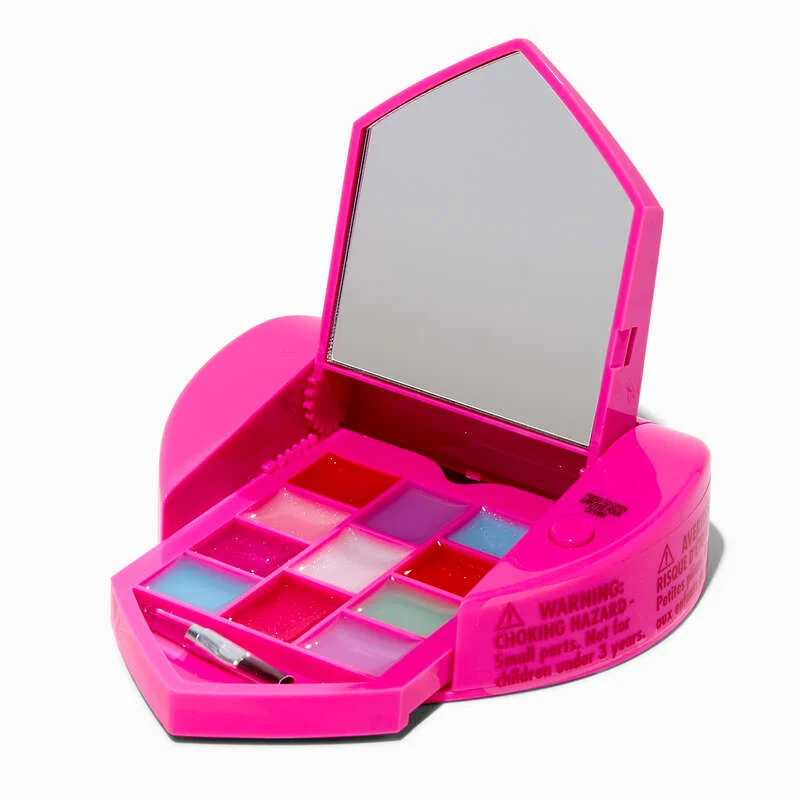 Set de brillo labial con diseño de corazón Claire’s Club. Incluye: 11 brillos de labios, 1 pincel de labios. Medidas: 10,16 ancho x 10,16 alto x 2,54 profundidad cm