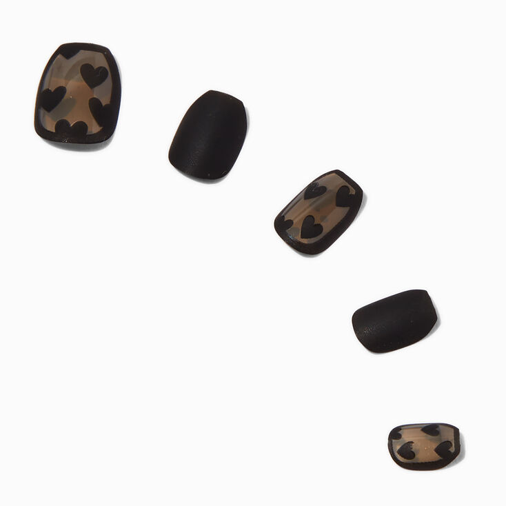 Set de uñas Coffin con print de corazones
